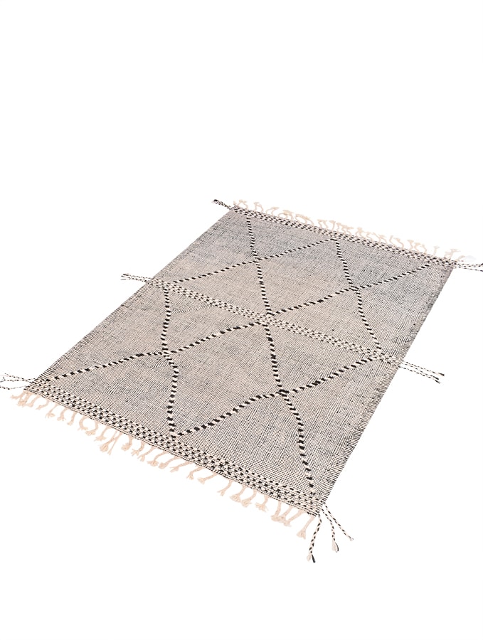 שטיח קילים כפרי מלבני מצמר צבעוני בגוונים חום ובז'