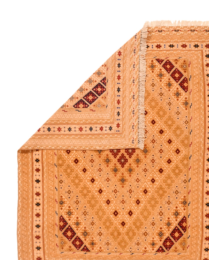 שטיח כפרי מלבני עשוי צמר בגוון כתום