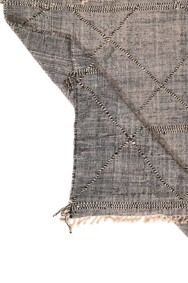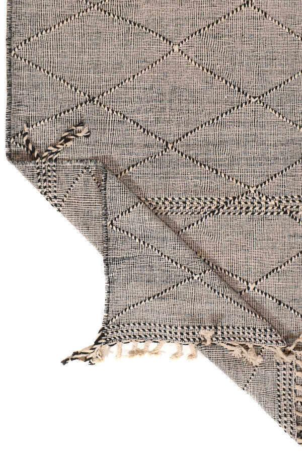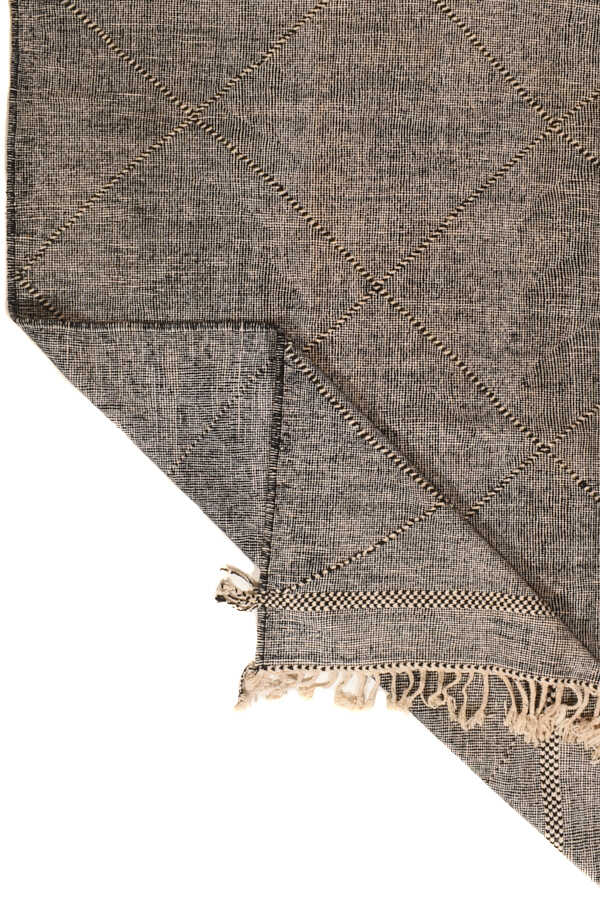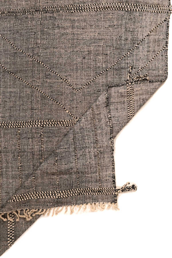 שטיח קילים נורדי בגווני שחור ולבן מצמר בטקסטורה שטוחה