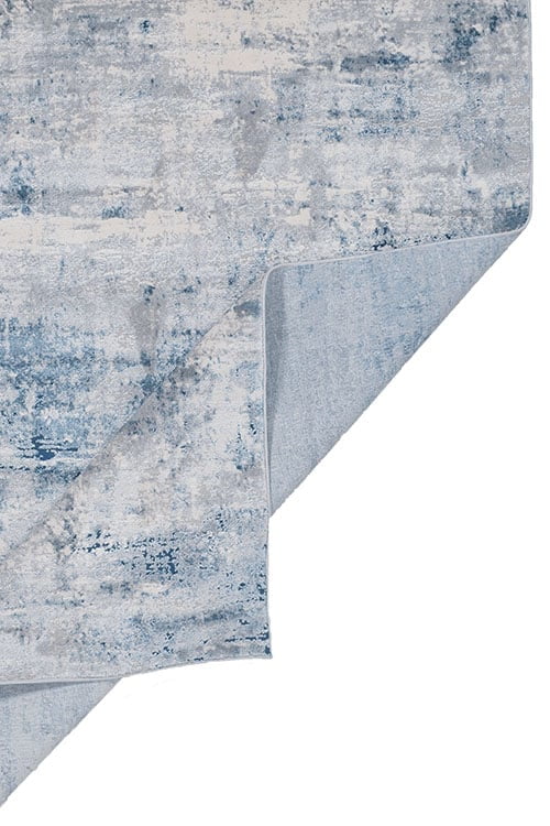 שטיח מושלם בעיצוב מודרני בעל דוגמא מופשטת, המשלב מספר גוונים של כחול בהיר וכהה, על רקע לבן, המאפשרים התאמה מושלמת למגוון חללים בבית.