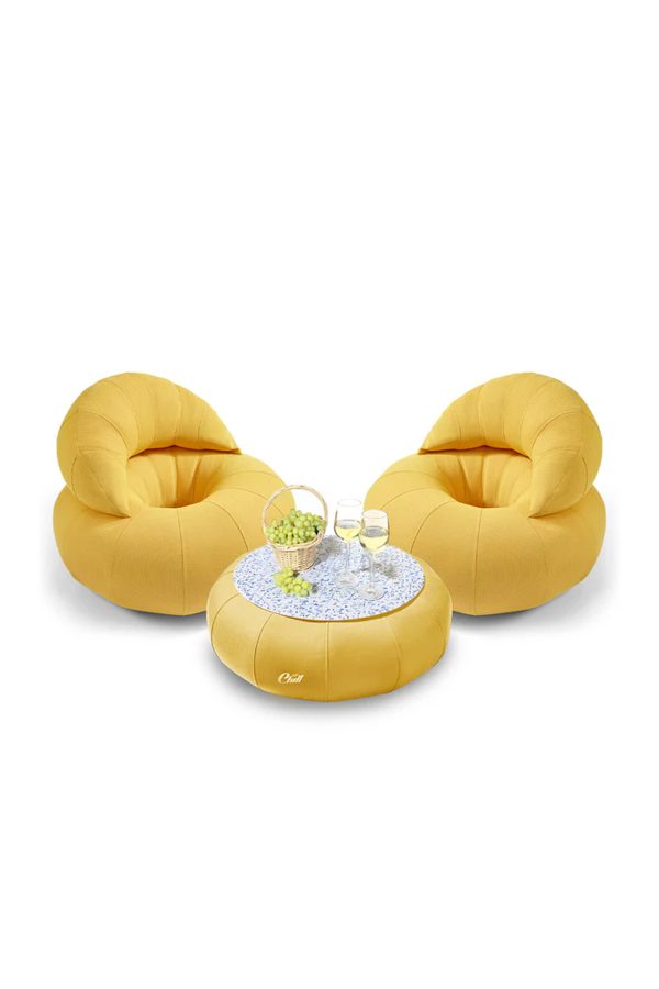 חבילת כורסאות קרואסון עם שולחן דונאט XL ומגש לבחירה צהוב