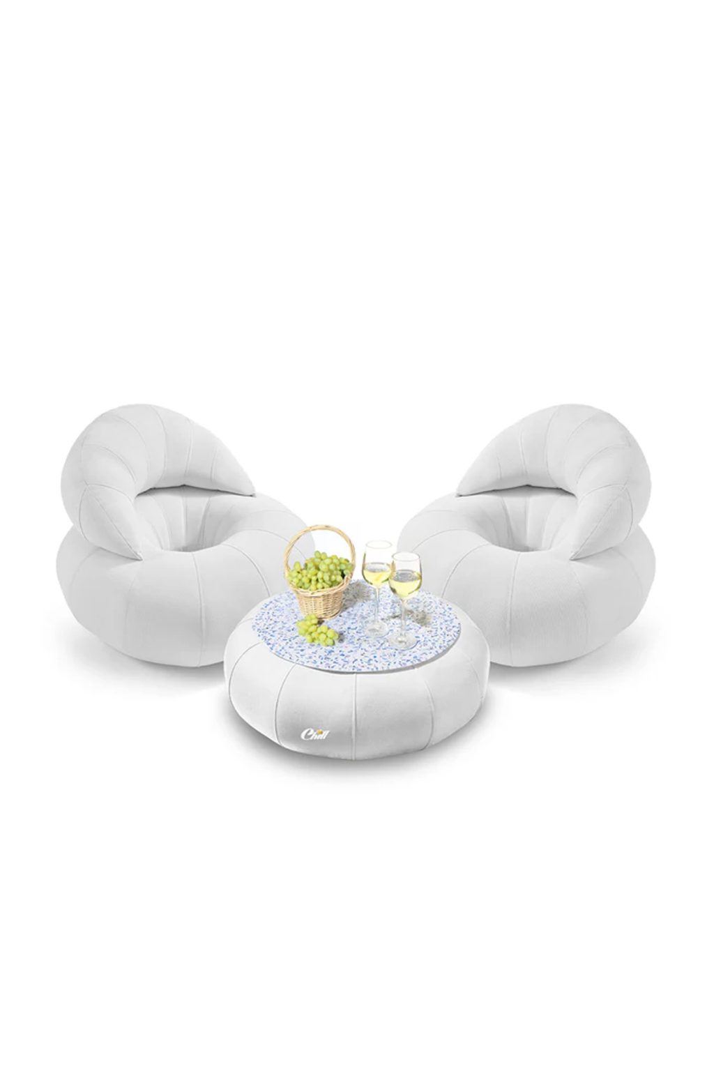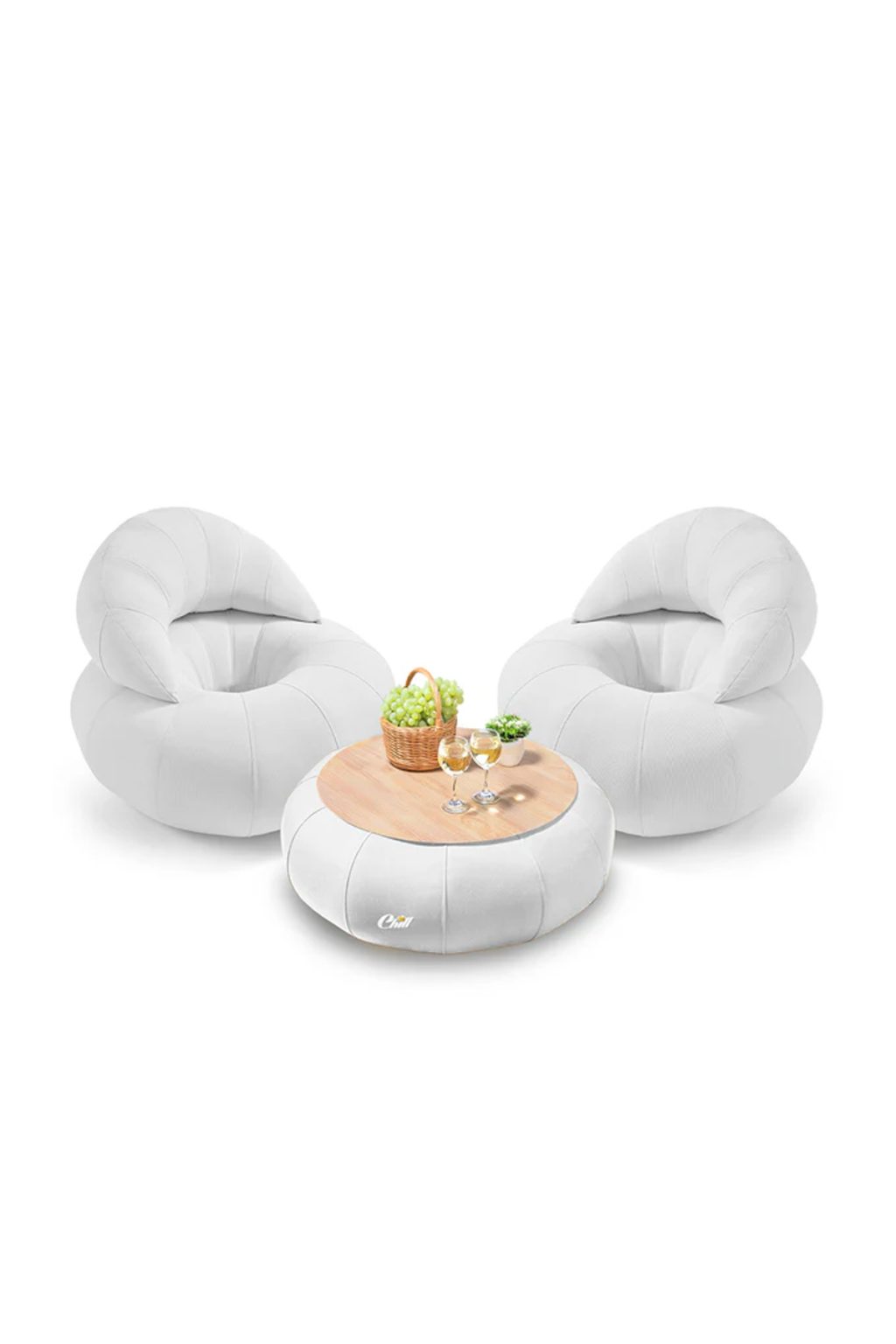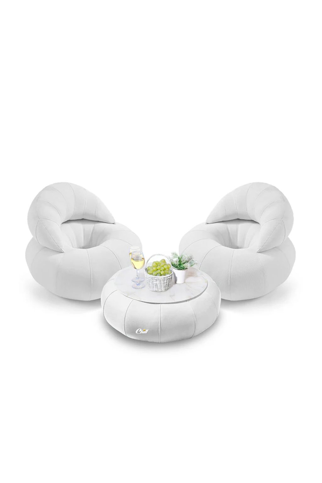חבילת כורסאות קרואסון עם שולחן דונאט XL ומגש לבחירה לבן