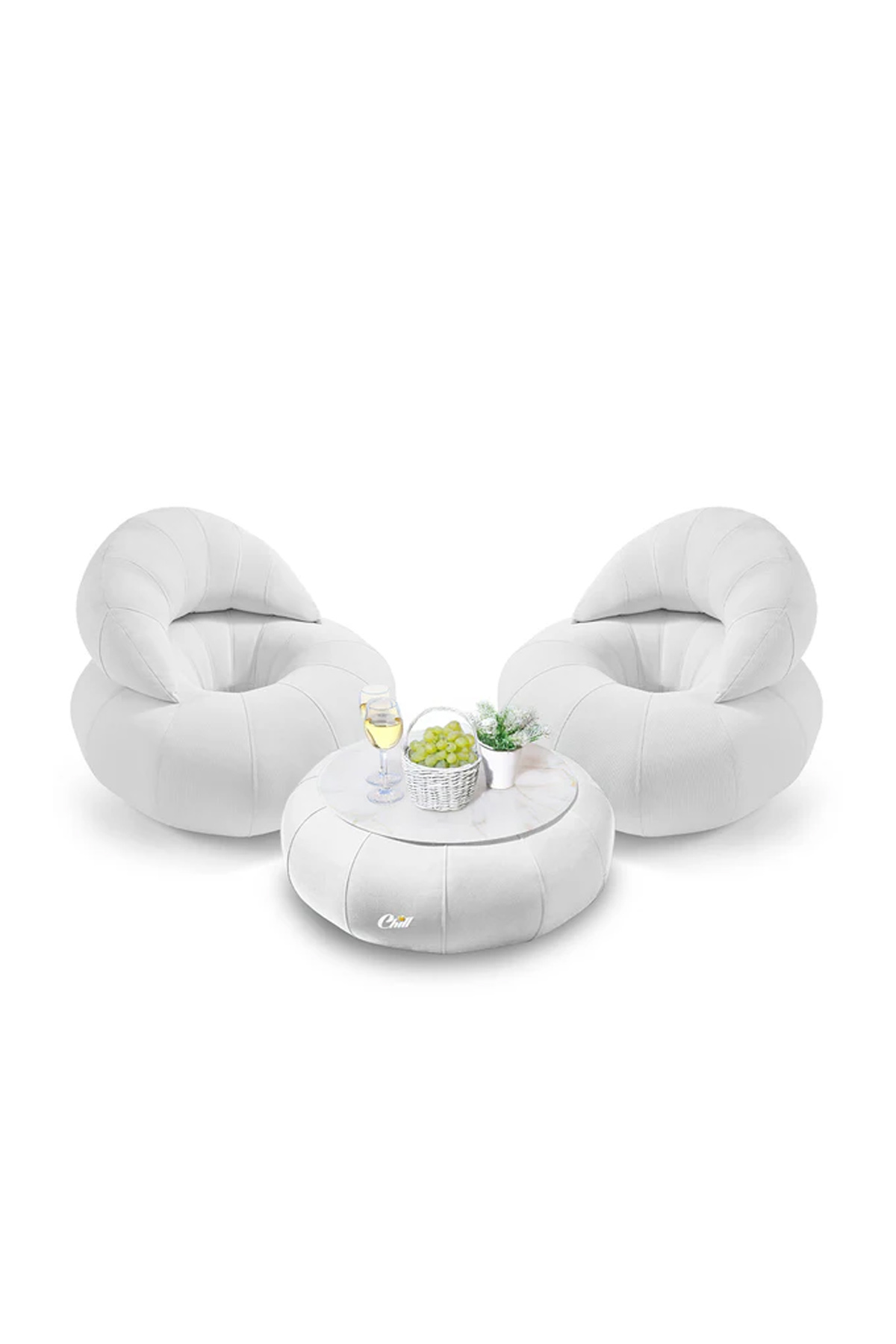 מק"ט: חבילת כורסאות קרואסון עם שולחן דונאט XL ומגש לבחירה לבן
