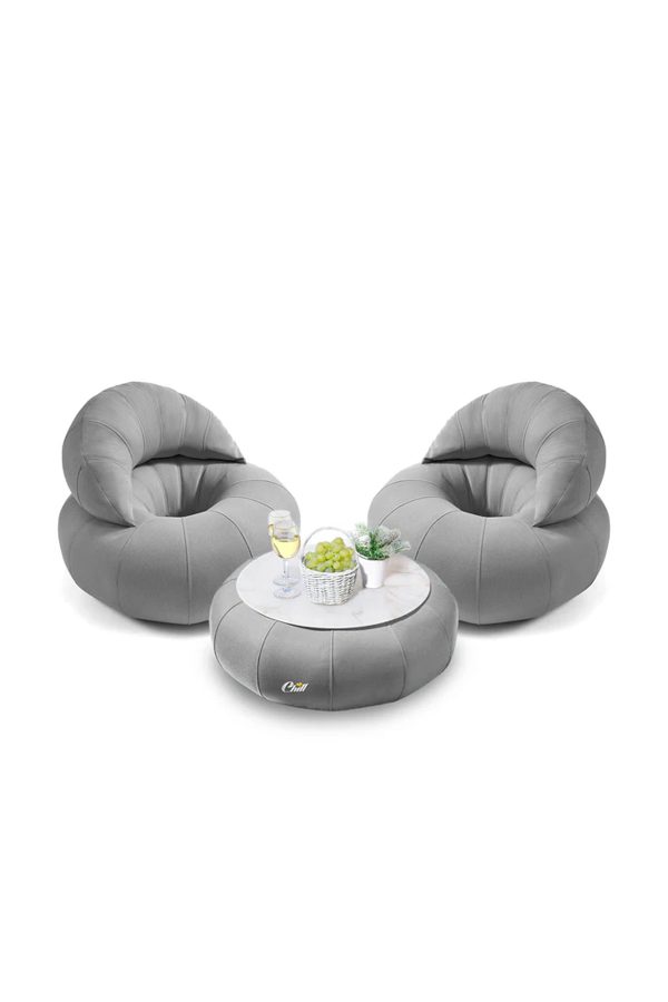 מק"ט: חבילת כורסאות קרואסון עם שולחן דונאט XL ומגש לבחירה אפור בהיר