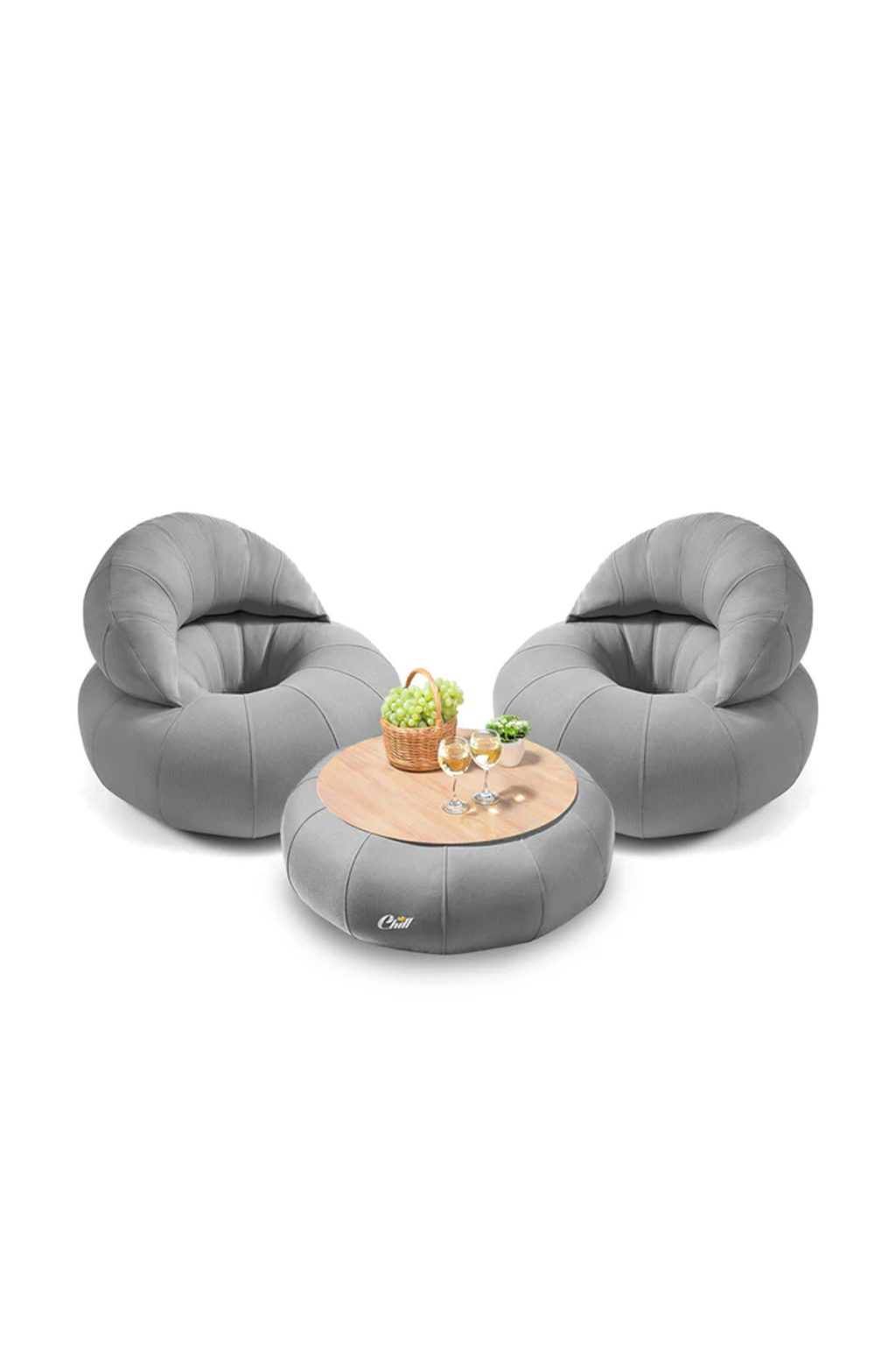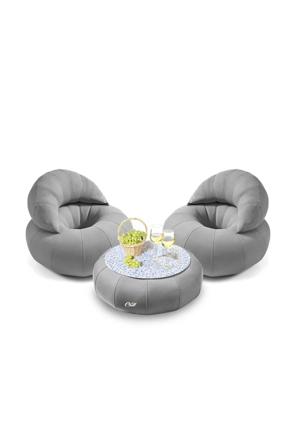 מק"ט: חבילת כורסאות קרואסון עם שולחן דונאט XL ומגש לבחירה אפור בהיר