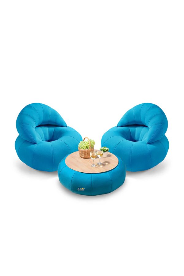 חבילת כורסאות קרואסון עם שולחן דונאט XL ומגש לבחירה טורקיז