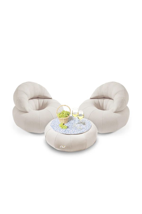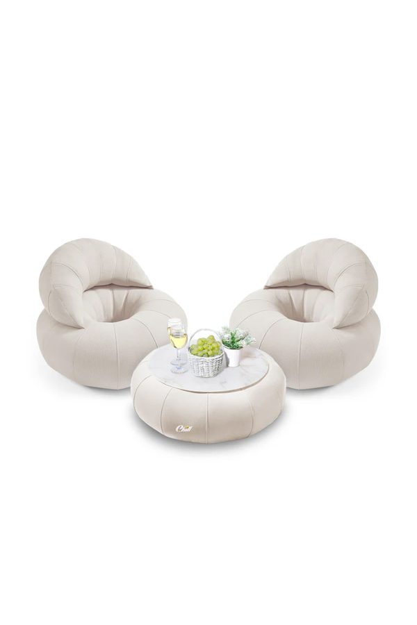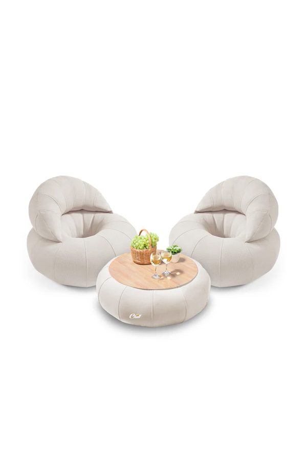 חבילת כורסאות קרואסון עם שולחן דונאט XL ומגש לבחירה שמנת