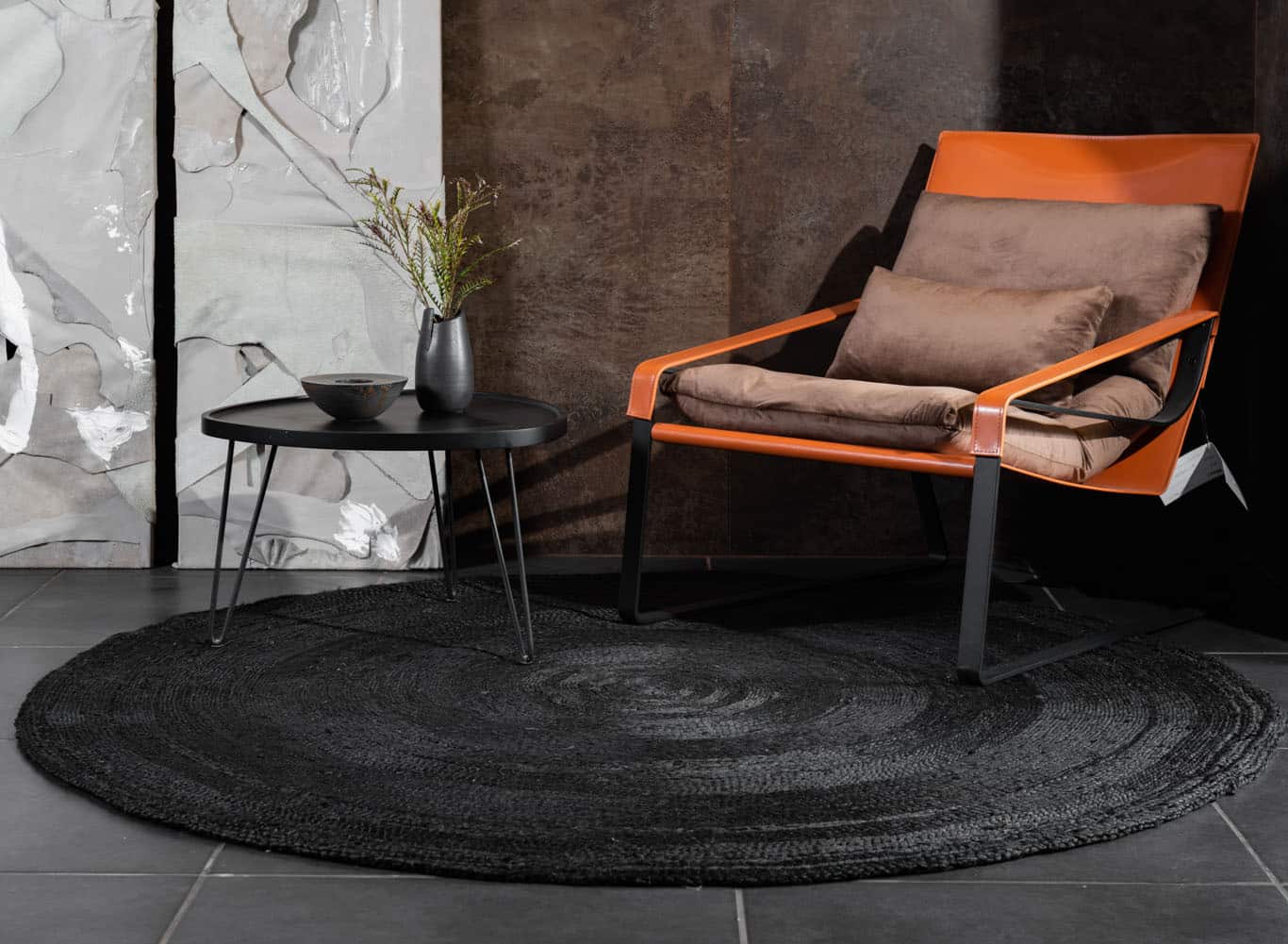 שטיח חבל עגול מדהים מקולקציית פטאיה בצבע שחור אלגנטי בגימור מבריק, שיוסיף טאצ׳ מעוצב לכל פינה ריקה בה תבחרו מקם אותו.