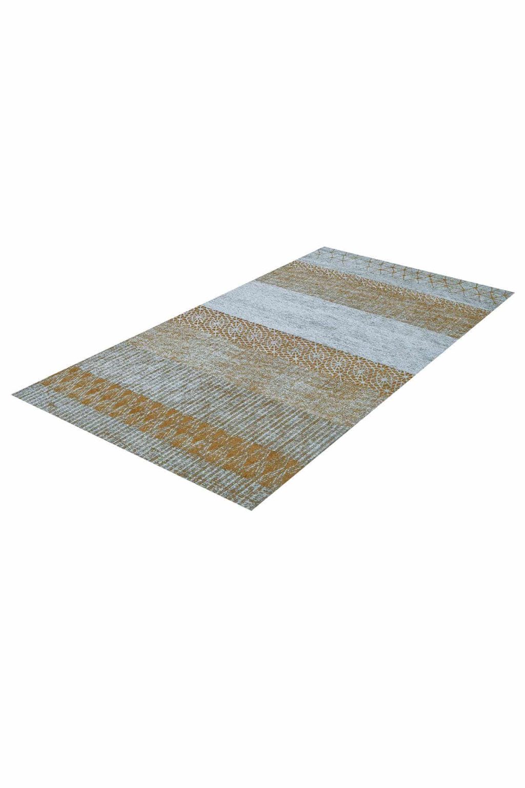 שטיח מרשים במראה מודרני מדגם מנילה בצבע אפור בשילוב גוונים בהירים וכהים, עם 10 דוגמאות אתניות וגיאומטריות שונות לכל אורך השטיח, כשאחת יותר יפה מהשניה, והוא זמין בעוד שני צבעים מדהימים לבחירה.