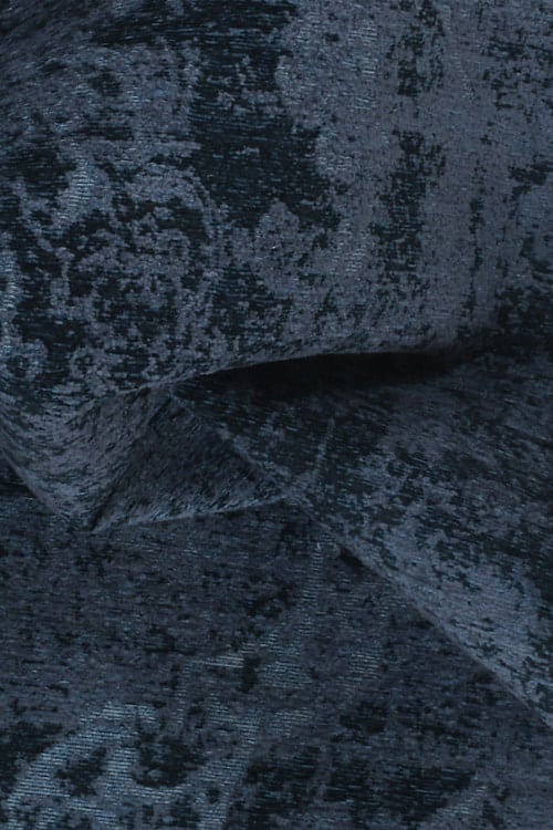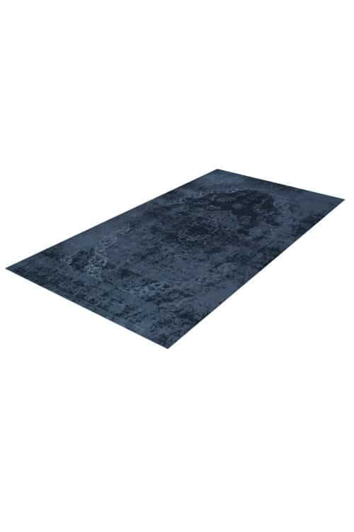 שטיח מושלם לסלון מדגם מנילה במראה משופשף טרנדי, בדוגמא קלאסית המגיעה בצבע כחול כהה ואפור עם שחור, באשליית קטיפה אבל במראה הכי מודרני שיש.