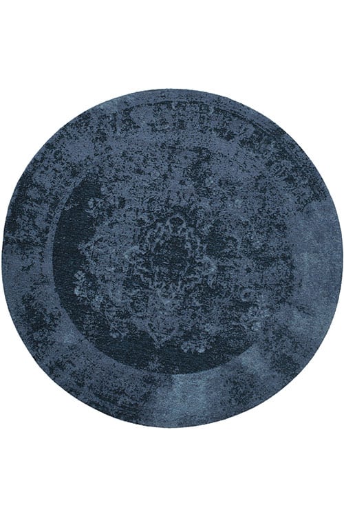 שטיח עגול מושלם מדגם מנילה במראה משופשף טרנדי, בדוגמא קלאסית המוצגת בגווני כחול כהה, באשליית קטיפה אבל במראה הכי מודרני שיש, והוא קיים גם בגוון אפור על בסיס שחור, כחול כהה, תכלת חלומי וכסוף.