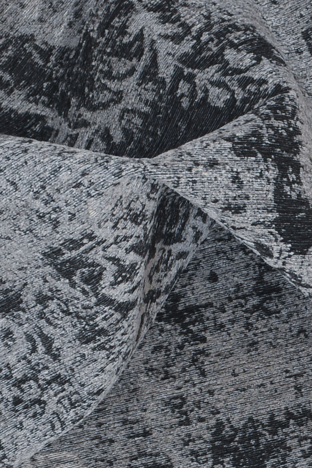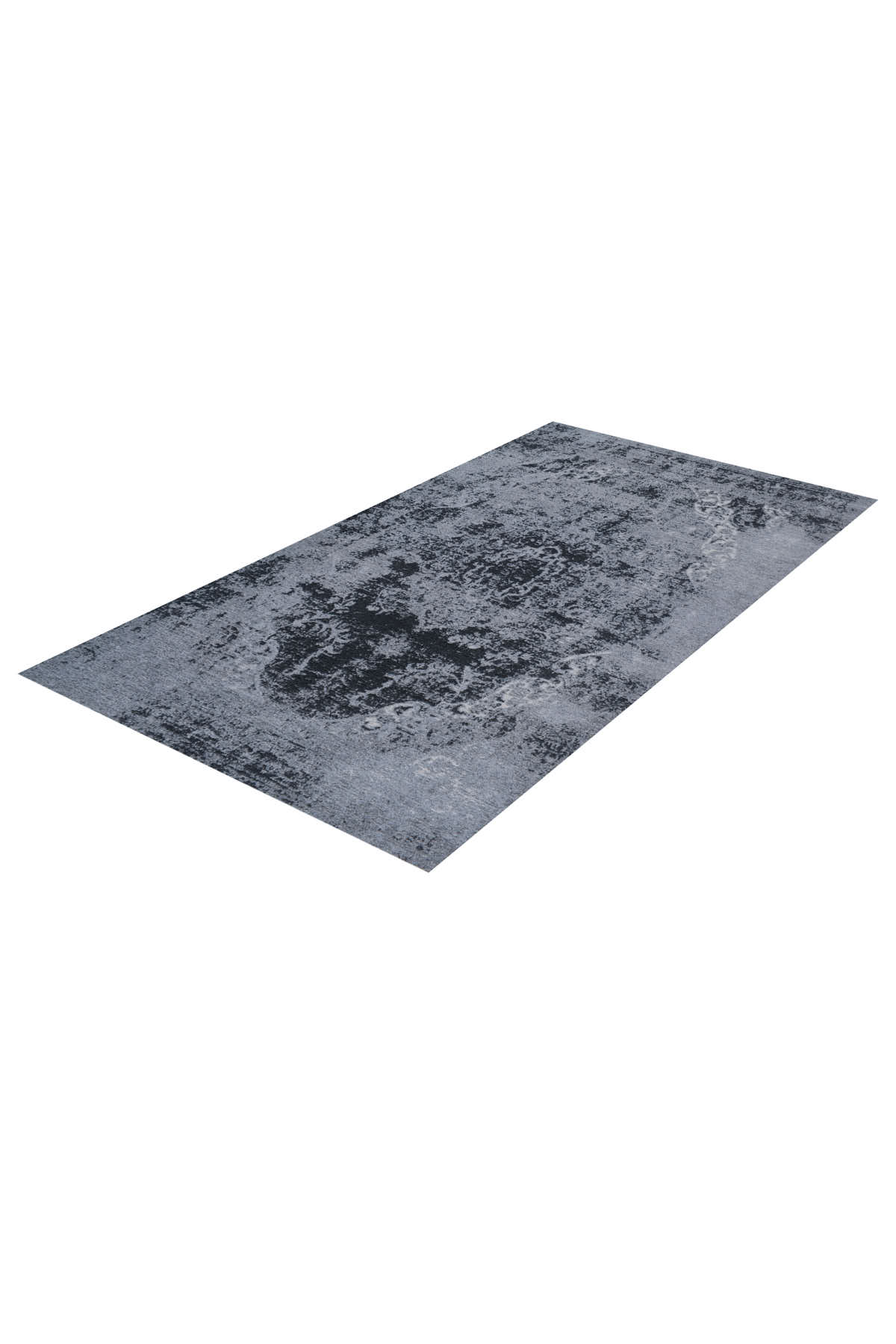 שטיח מושלם לסלון מדגם מנילה במראה משופשף טרנדי, בדוגמא קלאסית המגיעה בצבע כחול כהה ואפור עם שחור, באשליית קטיפה אבל במראה הכי מודרני שיש.