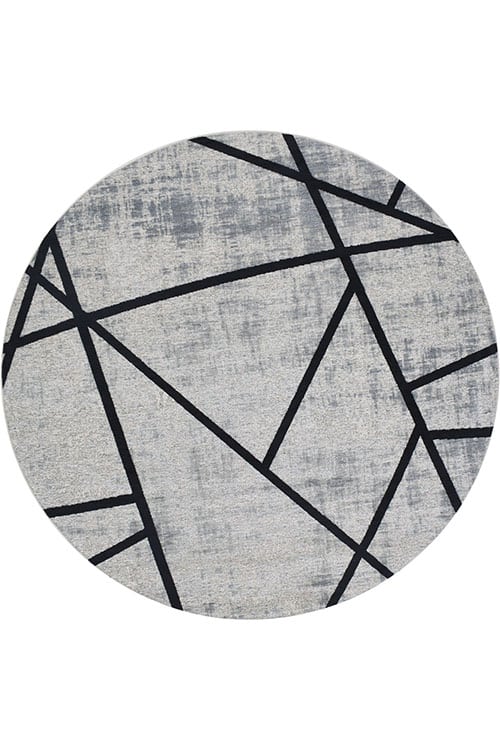 שטיח עגול מדגם מנילה בדוגמאות גיאומטריות טרנדיות במיוחד, למראה תעשייתי מודרני ומעוצב גם באיזורים שלא רואים!