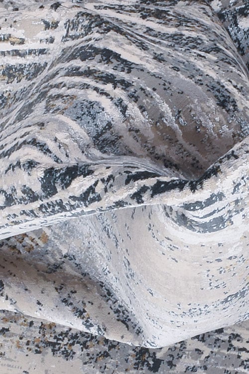 שטיח סטורי בסגנון מודרני בדוגמא מופשטת וטרנדית במיוחד, העשוי סיבי פוליאסטר בשילוב חוטי ויסקוזה הנארגים במכונה בטכניקה מדוקדקת.
