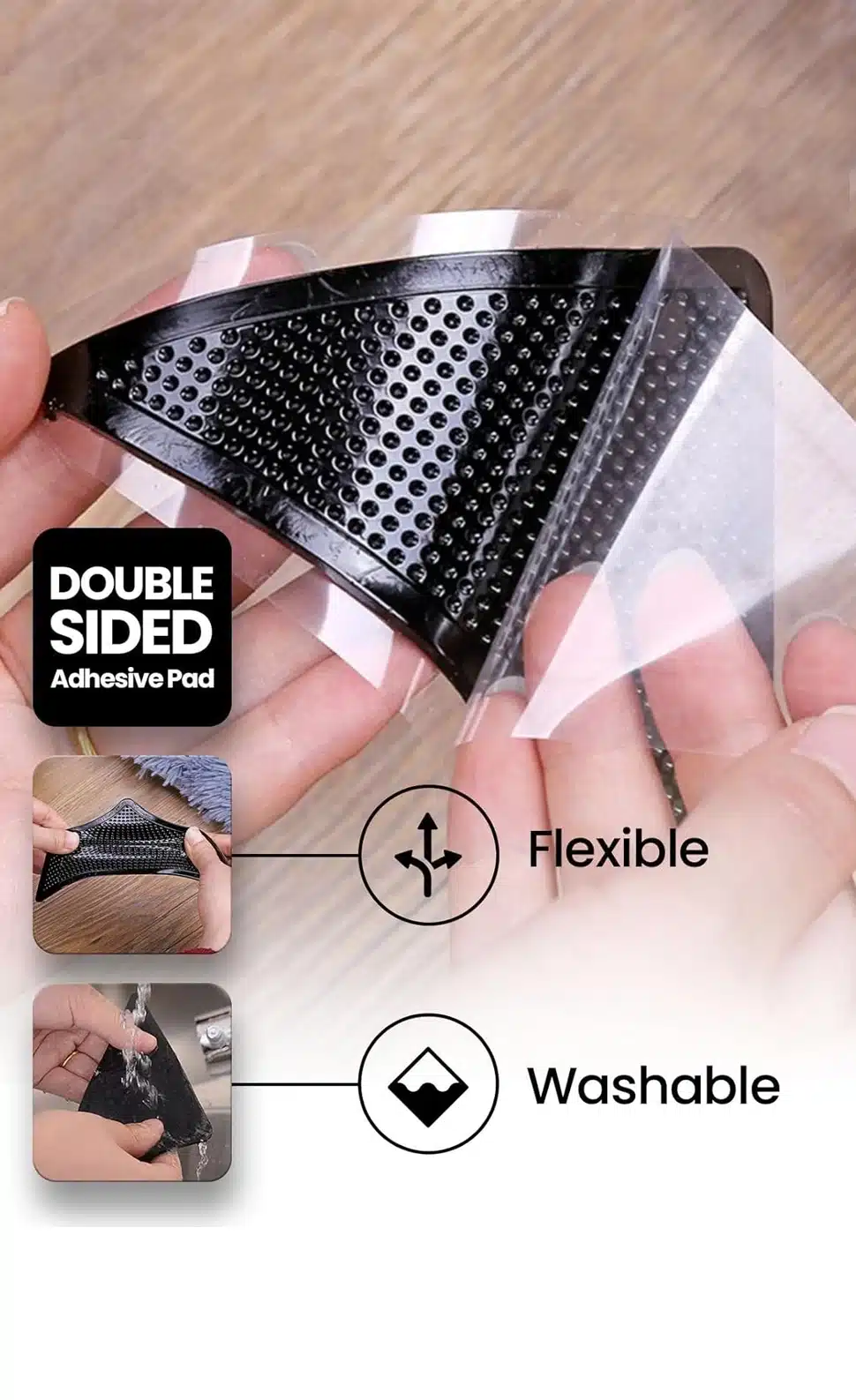 סט משולשי סיליקון לקיבוע מושלם של שטיחים.