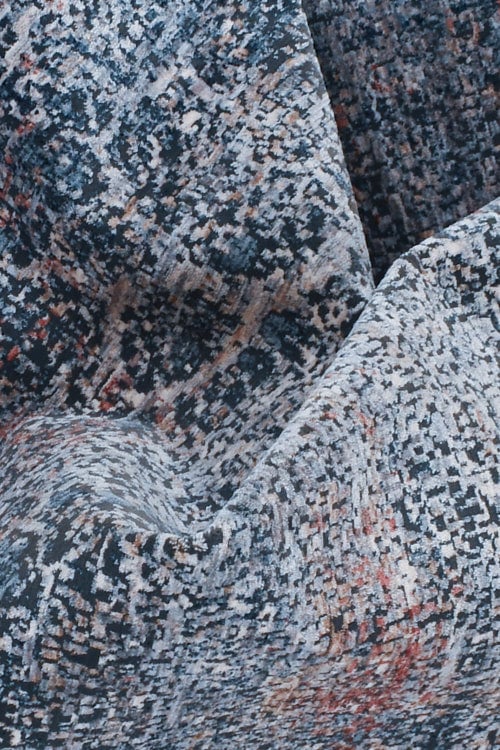 השטיח עשוי 100% סיבי פוליאסטר הנארגים במכונה בתוצרת טורקיה, במראה רב גוני ועשיר במיוחד, כאשר הוא מדמה ״אבני בזלת גולמיות״ הנוצרות ע״י הסיבים הכהים, כאשר הסיבים האדומים מציצים מבעד לצבע האפור הכהה, באריגה מושלמת וקפדנית.