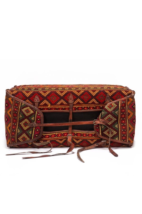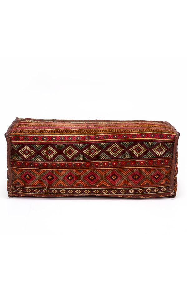 פוף בעיצוב כפרי עשוי צמר. הפוף יוצר בעבודת יד.