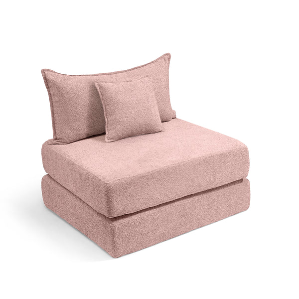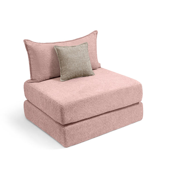 צ'יל יחיד מבד בוקלה – ספת לאונג' מודולרית ורוד עתיק