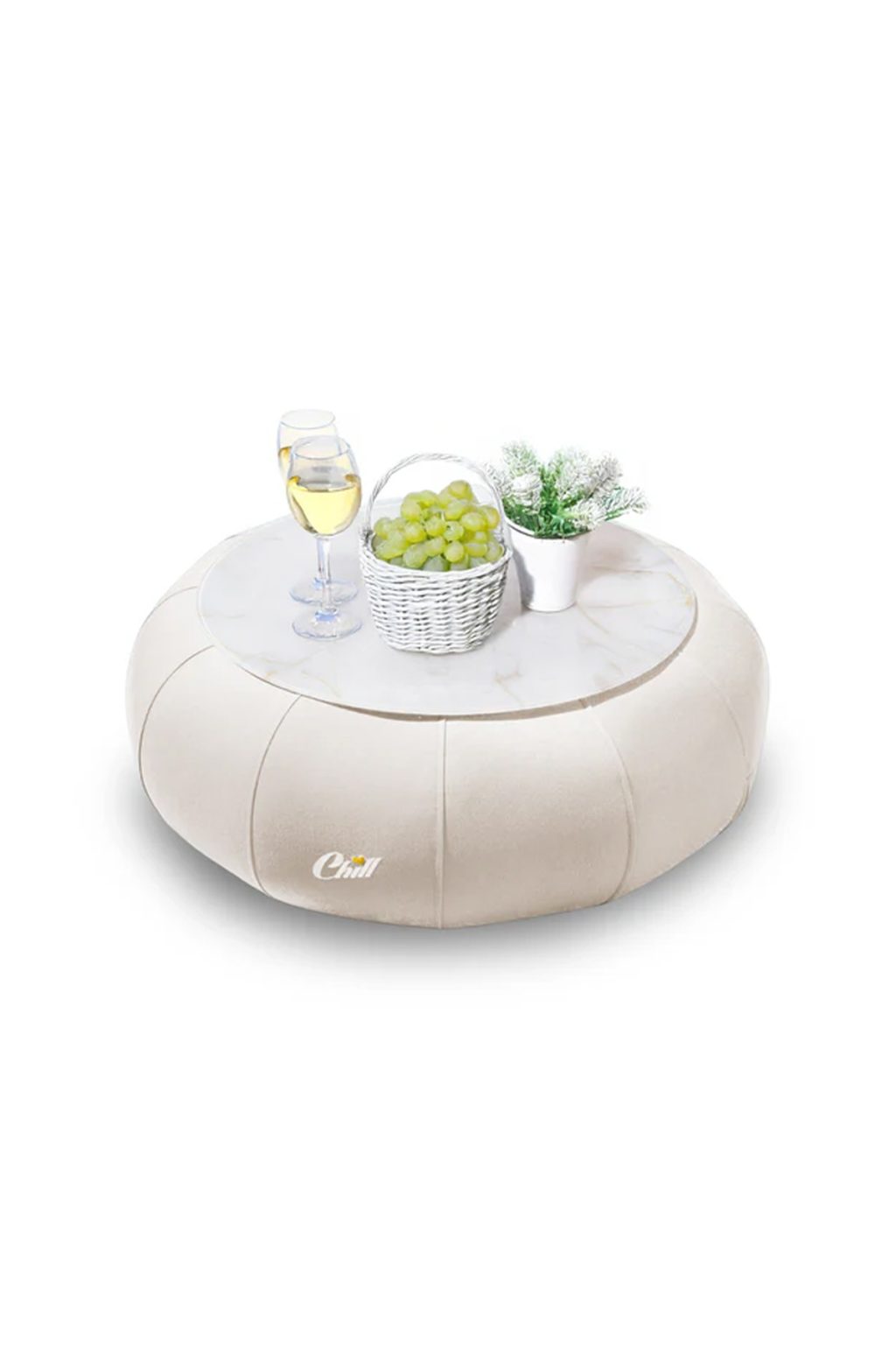 | חומר | מילוי - כדוריות קלקר מקורי ואיכותי + פתיתי ספוג PU גרוס + רוכסן בד עליון - בד חוץ אולפין: 100% אולפין מגש פרספקס: עוב |