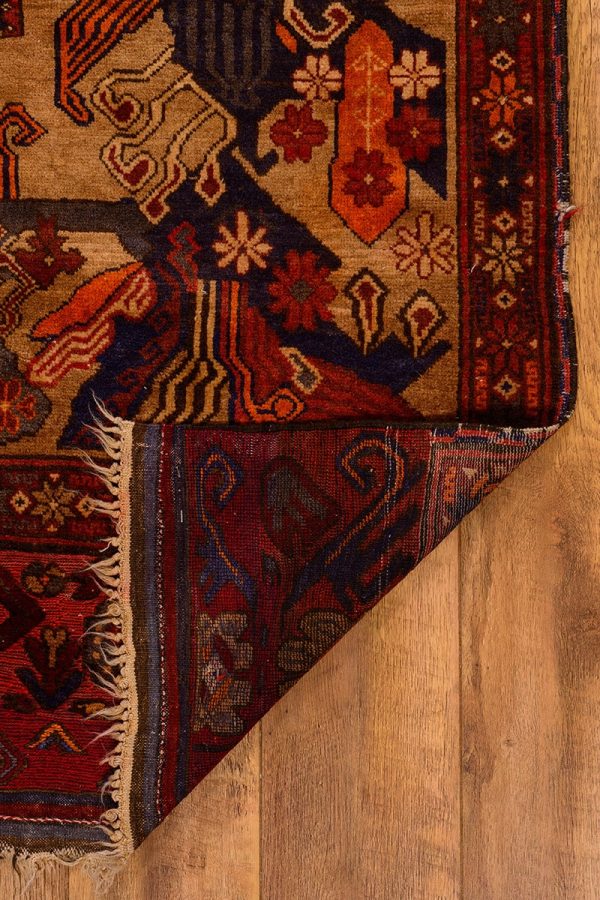 שטיח מפואר בעיצוב קלאסי אותנטי המשלב מספר סגנונות עיצוב מקומיים, הבאים לידי ביטוי בצבעי השטיח והדוגמאות הרקומות עליו.