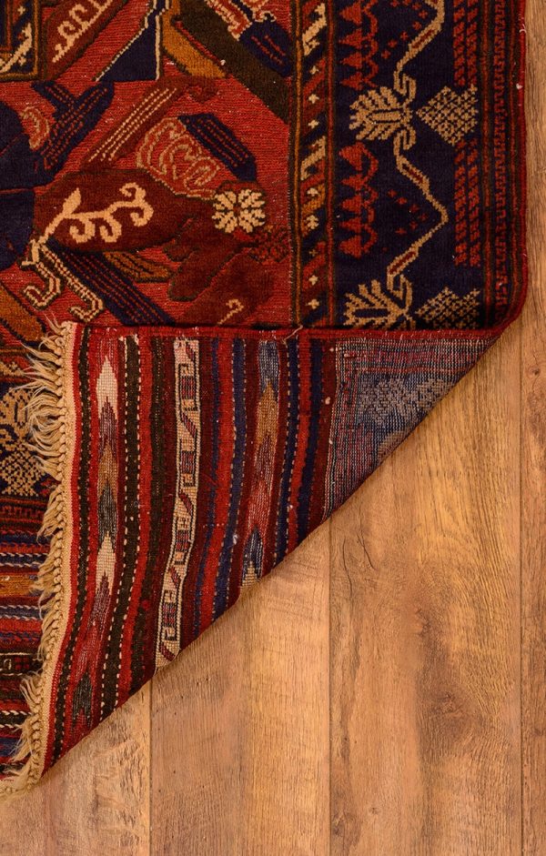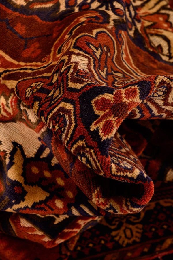 שטיח מפואר בעיצוב קלאסי אותנטי המשלב מספר סגנונות עיצוב מקומיים, הבאים לידי ביטוי בצבעי השטיח והדוגמאות הרקומות עליו.