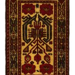שטיח מפואר בעיצוב קלאסי אותנטי המשלב מספר סגנונות עיצוב מקומיים, הבאים לידי ביטוי בצבעי השטיח והדוגמאות הרקומות עליו.