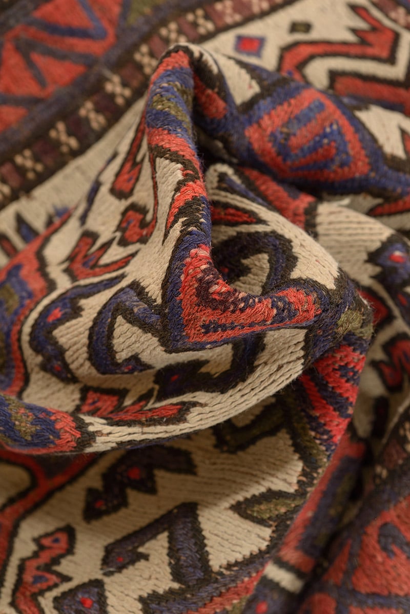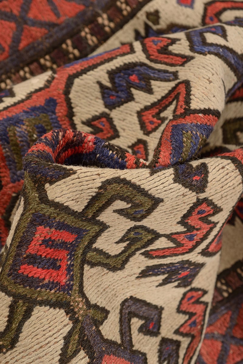 האוזבקי המשולב עשוי 100% צמר איכותי ורך הנארג בעבודת יד מיוחדת, המוכרת כטכניקה של שטיחי הקילים המסורתיים.