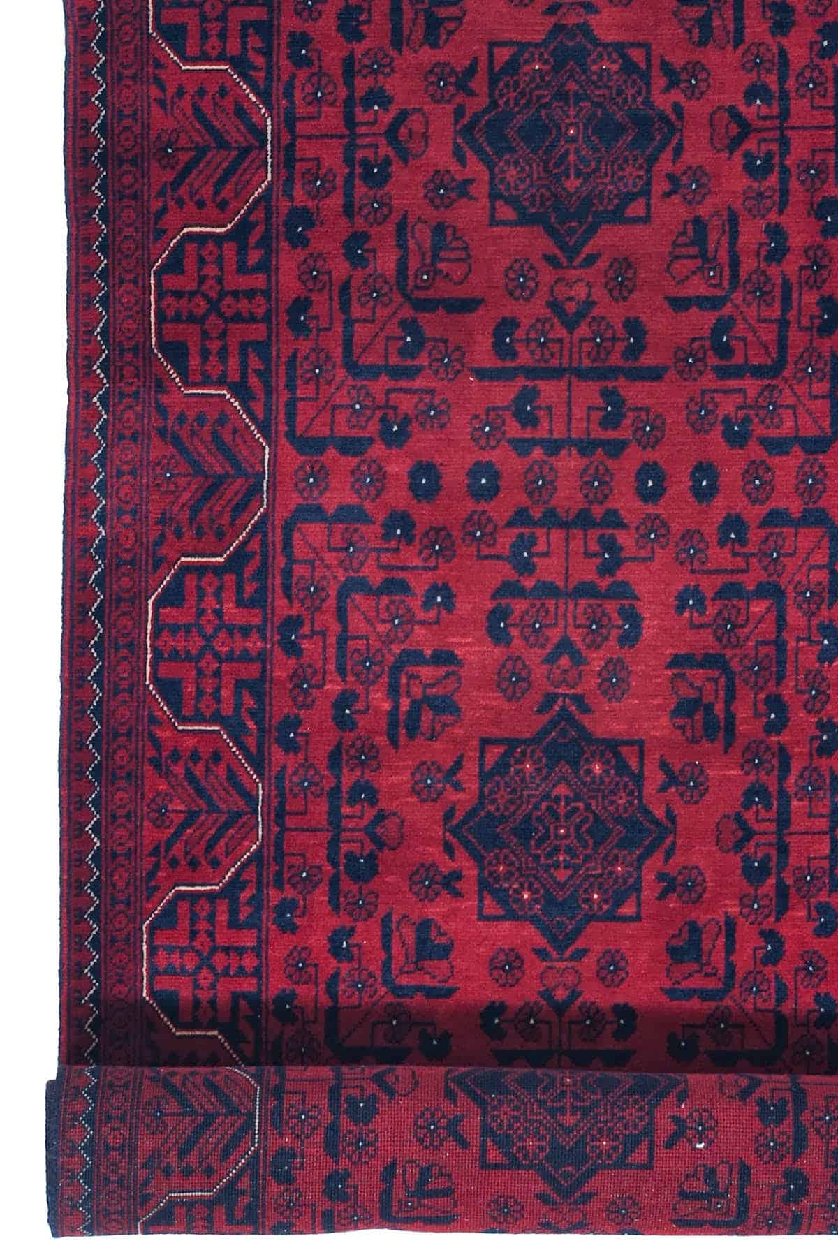 השטיחים האפגניים, עשויים בעבודת יד, 100% צמר כשרמת צפיפות החוטים גבוהה מאוד. השטיחים האפגניים מגיעים לרוב בצבעים של כחול ואדום עז ולעתים גם מעט לבן עם צורות גאומטריות החוזרות על עצמן. השטיחים האפגניים מאוד נעימים למגע, עמידים מאוד וקלים לניקוי.
