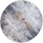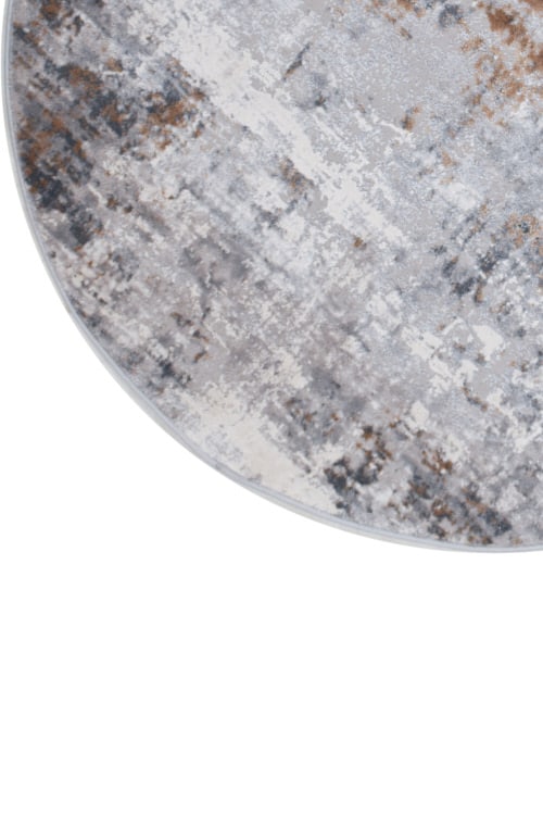 שטיח בגזרה עגולה מדגם גאיה בצבע אפור על כל גווניו, בשילוב נגיעות כסופות וחומות, המוסיפות למראה המונוכרומטי נגיעה קלה של צבע.