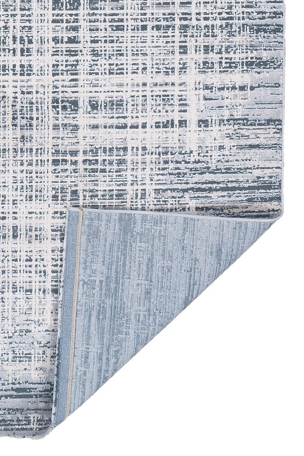 שטיח אפור לסלון בעיצוב מודרני בליווי דוגמאות קווים בהירים לכל אורך השטיח בצורה מופשטת ואלגנטית לעין.