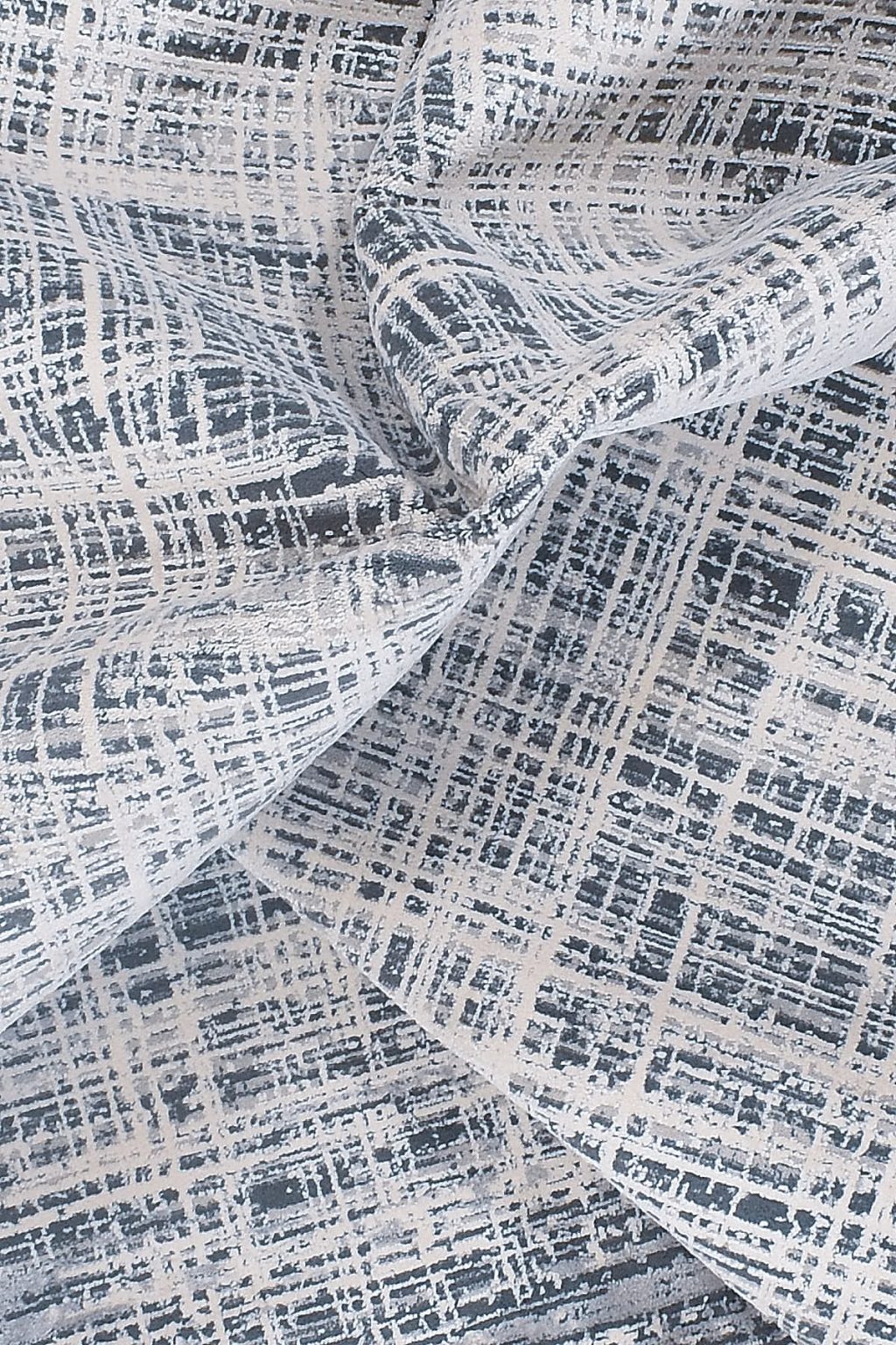 שטיח אפור לסלון בעיצוב מודרני בליווי דוגמאות קווים בהירים לכל אורך השטיח בצורה מופשטת ואלגנטית לעין.