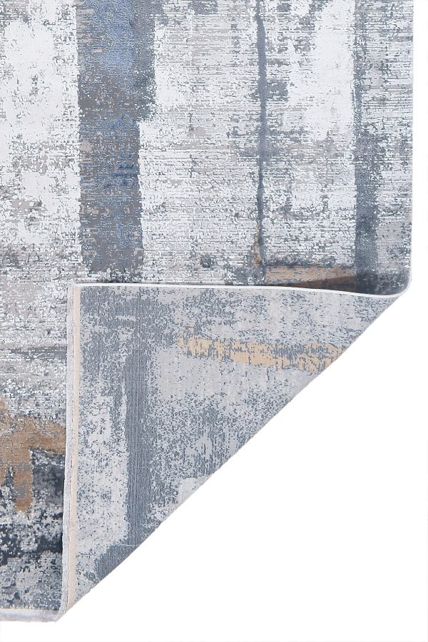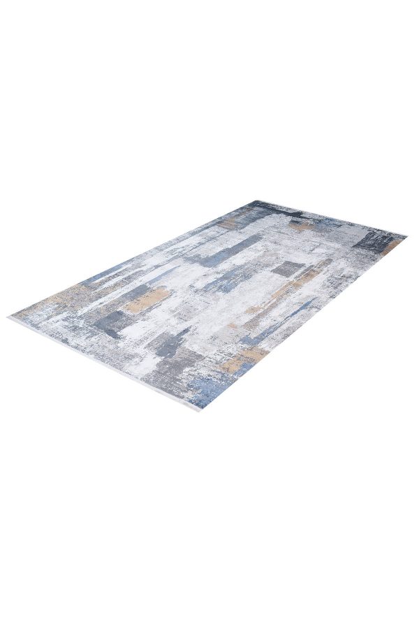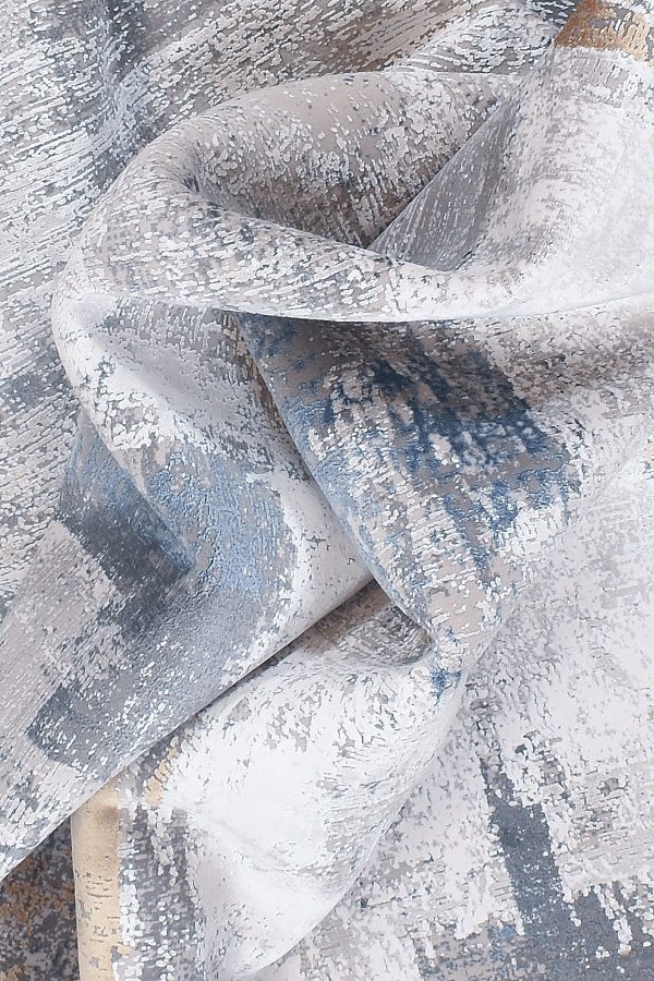 שטיח דאימונד מיה 60548, הכירו את התכשיט שטיח לחדר השינה החדש שלכם, שטיח בעיצוב מודרני עם דוגמאות אמורפיות באשליית משיכות מכחול בגווני כחול וזהוב.