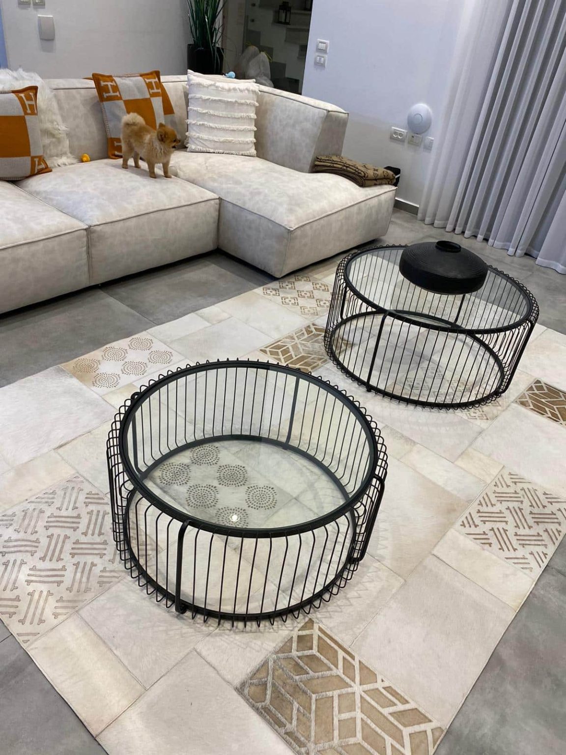 שטיח עור פרה מדהים לסלון בעיצוב מודרני עשיר ומושלם לסלון שלכם, הנארג בעבודת יד מסוג אריגת טלאים של יחידות עור לא זהות, בעלות טקסטורה שונה וגוון שונה המחוברות לכדי יצירת מופת.