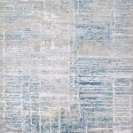 שטיח ססגוני בגווני כחול ואפור בצבעוניות שקטה והרמונית.