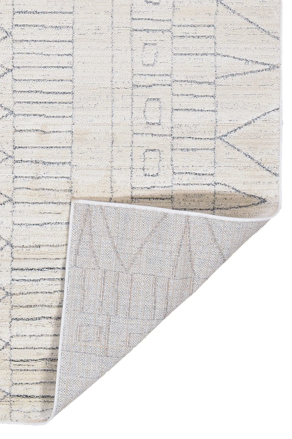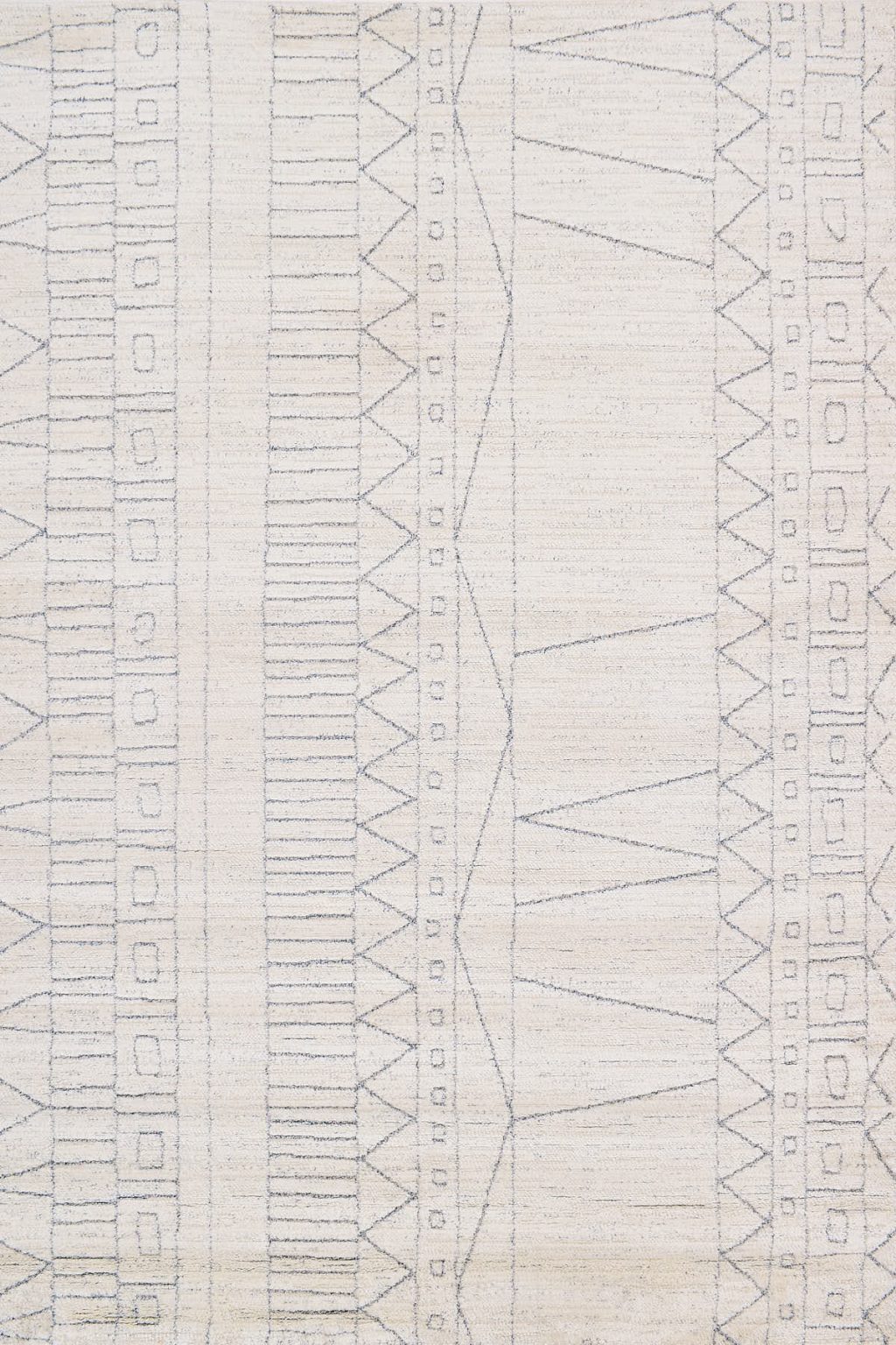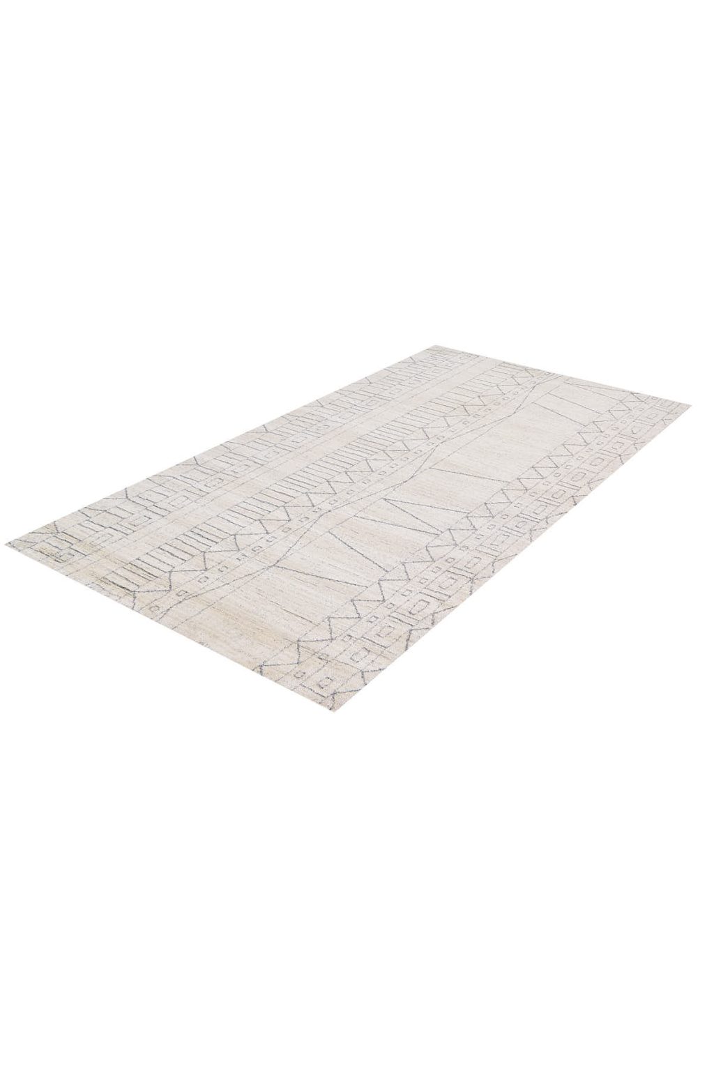 שטיח לבן מהקולקציה החדשה של מאטיס, המעוצב בסגנון אתני עם צורות גיאומטריות בהשראת הסגנון המרוקאי.
