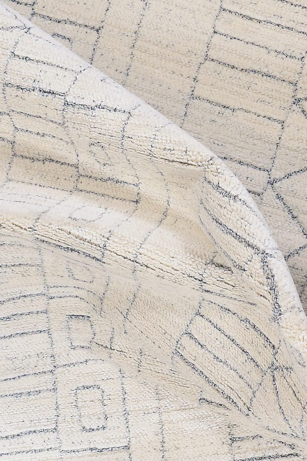 השטיח עשוי חוטי פוליאסטר משולב בחוטי פוליפרופילן הארוגים במכונה, ומשלבים את הצבע הלבן והאפור עם דוגמאות מושלמות לאורך השטיח
