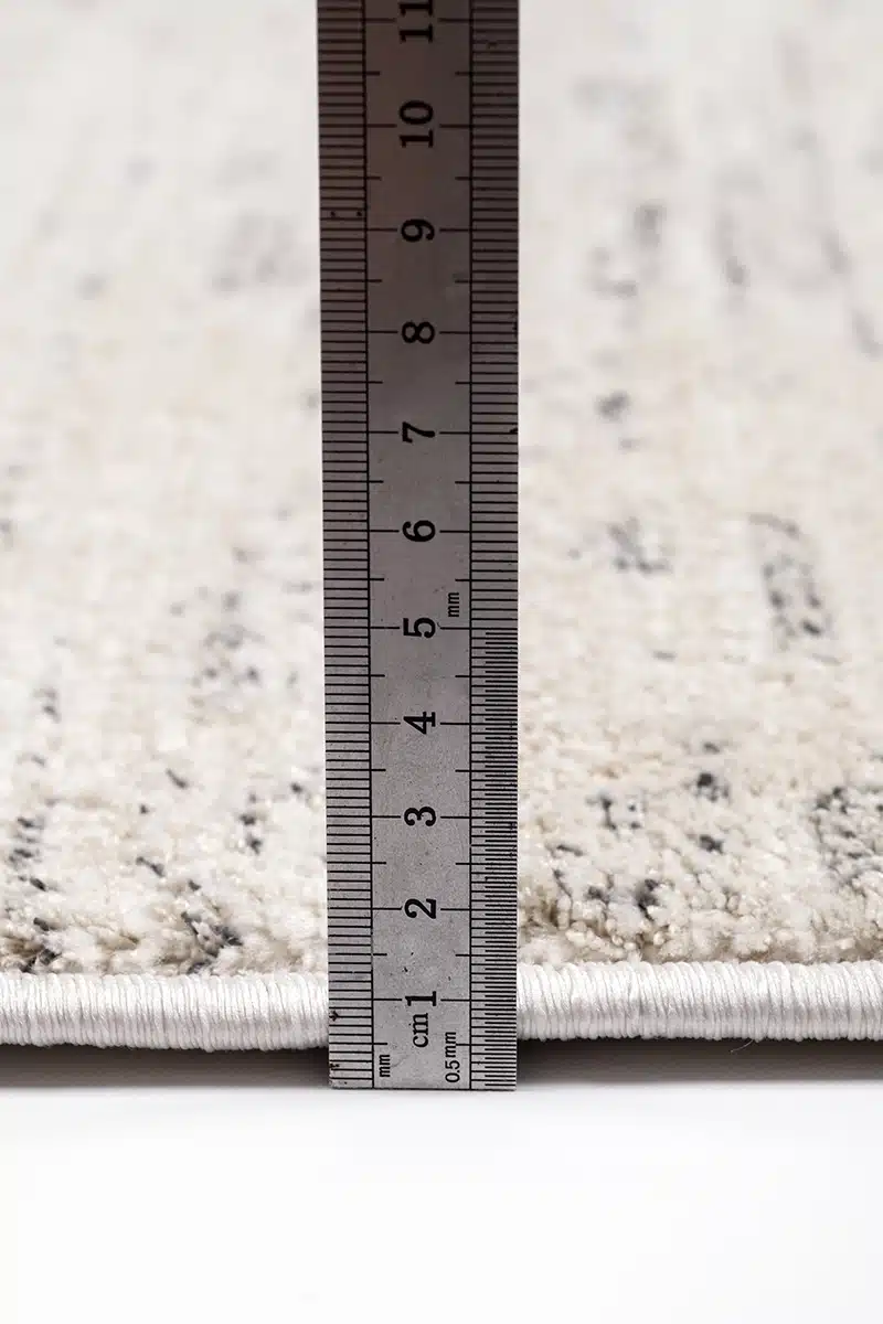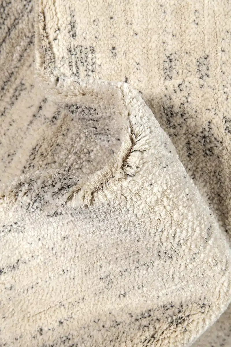 שטיח לסלון מקולקציית מאטיס, בצבע לבן עם דוגמא מודרנית מופשטת בדמות נגיעות אפורות