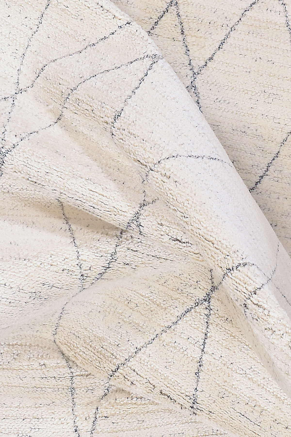 שטיח מושלם לסלון מקולקציית מאטיס החדשה, על בסיס לבן עם דוגמאות אתניות אפורות עדינות