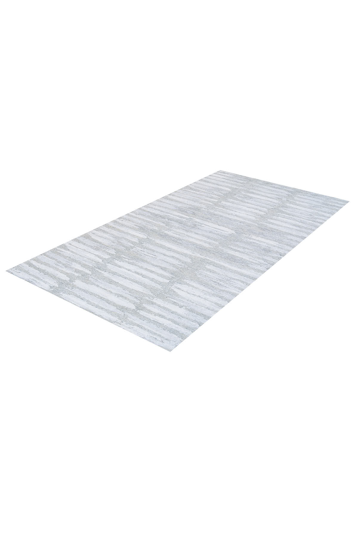 שטיח מנילה מהמם בעיצוב מודרני מכני של קווים מובילים וצורות משופשפות במראה תעשייתי מעוצב.