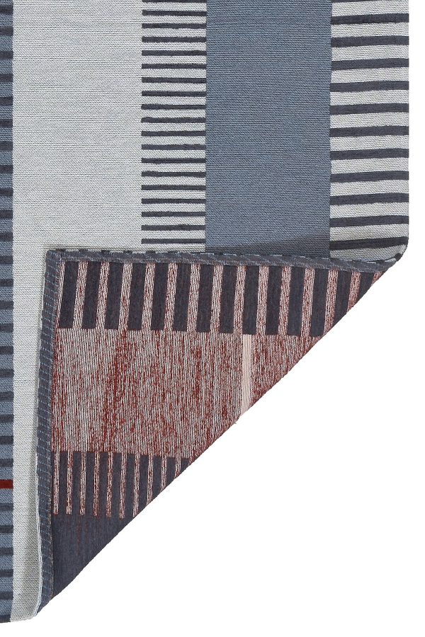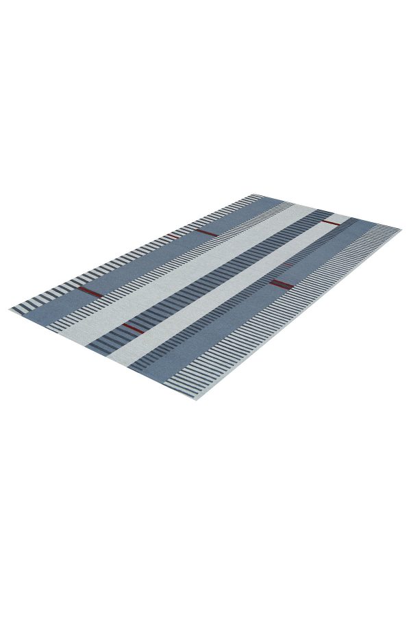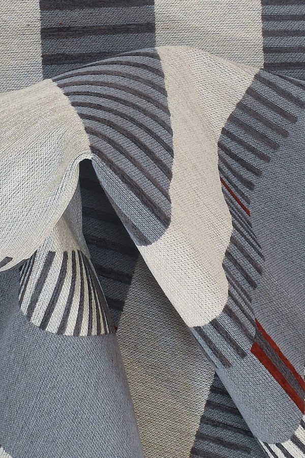 קולקציית מנילה מתחדשת בשטיח חדש ומודרני בגווני אפור בהיר וכהה עם דוגמאות אדומות המופיעות ברנדומליות.