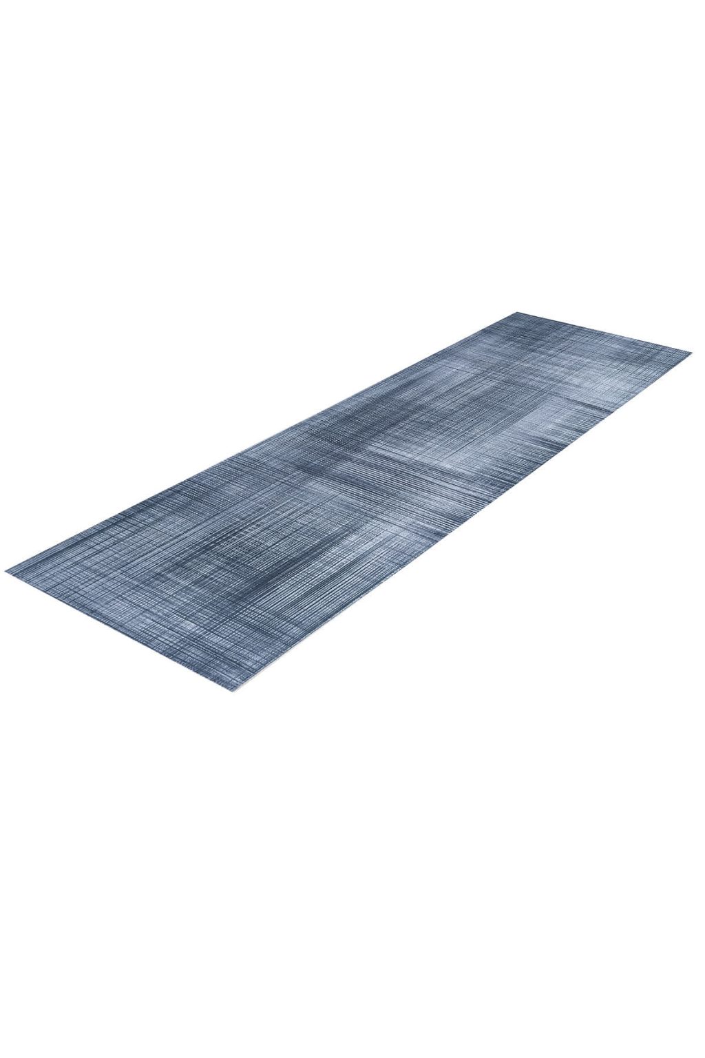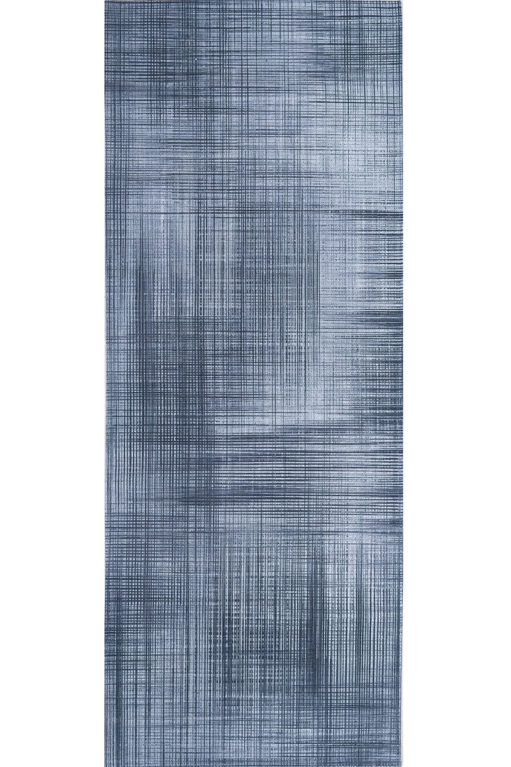 ראנר מטריף למסדרון, בעיצוב מודרני בגוון אפור כחלחל בדוגמת קווים וקוביות בגוון כסוף.