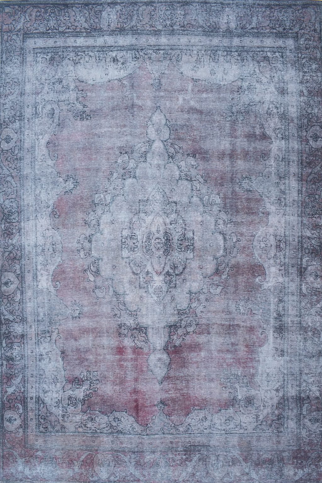 שטיח מדהים מקולקציית מרנטה המעוצב בסגנון מודרני של גרדיאנט צבעים בין אדום לכחול, המשולב בדוגמאות קלאסיות.
