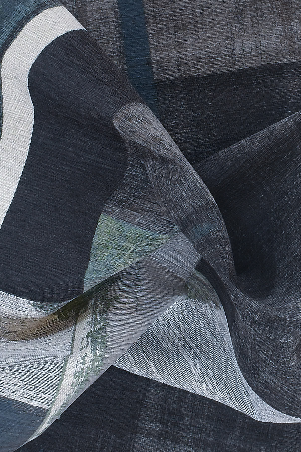 שטיח מושלם מקולקציית סוצ׳י, המשלב גווני כחול, אפור וירוק בדוגמא אבסטרקטית ועשירה.