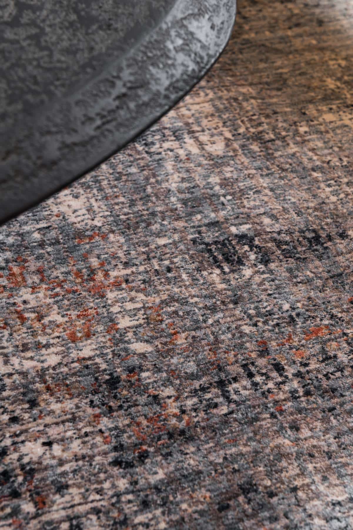 השטיח עשוי 100% סיבי פוליאסטר הנארגים במכונה בתוצרת טורקיה, במראה רב גוני ועשיר במיוחד, כאשר הוא מדמה ״אבני בזלת גולמיות״ הנוצרות ע״י הסיבים הכהים, כאשר הסיבים האדומים מציצים מבעד לצבע האפור הכהה, באריגה מושלמת וקפדנית.