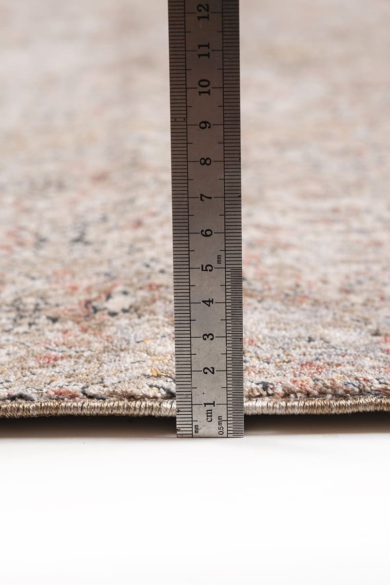 השטיח עשוי 100% סיבי פוליאסטר הנארגים במכונה בתוצרת טורקיה, במראה רב גוני ועשיר במיוחד, כאשר הוא מדמה ״אבני בזלת גולמיות״ הנוצרות ע״י הסיבים הכהים, כאשר הסיבים האדומים מציצים מבעד לצבע האפור הכהה, באריגה מושלמת וקפדנית.