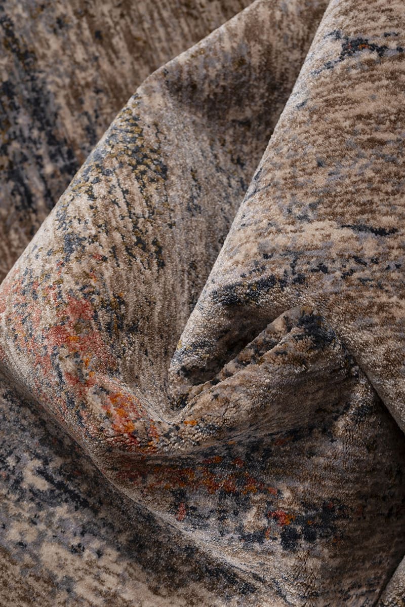 השטיח עשוי 100% סיבי פוליאסטר הנארגים במכונה בתוצרת טורקיה, במראה רב גוני ועשיר במיוחד, כאשר הוא מדמה ״אבני בזלת גולמיות״ הנוצרות ע״י הסיבים הכהים, כאשר הסיבים האדומים מציצים מבעד לצבע האפור הכהה, באריגה מושלמת וקפדנית.