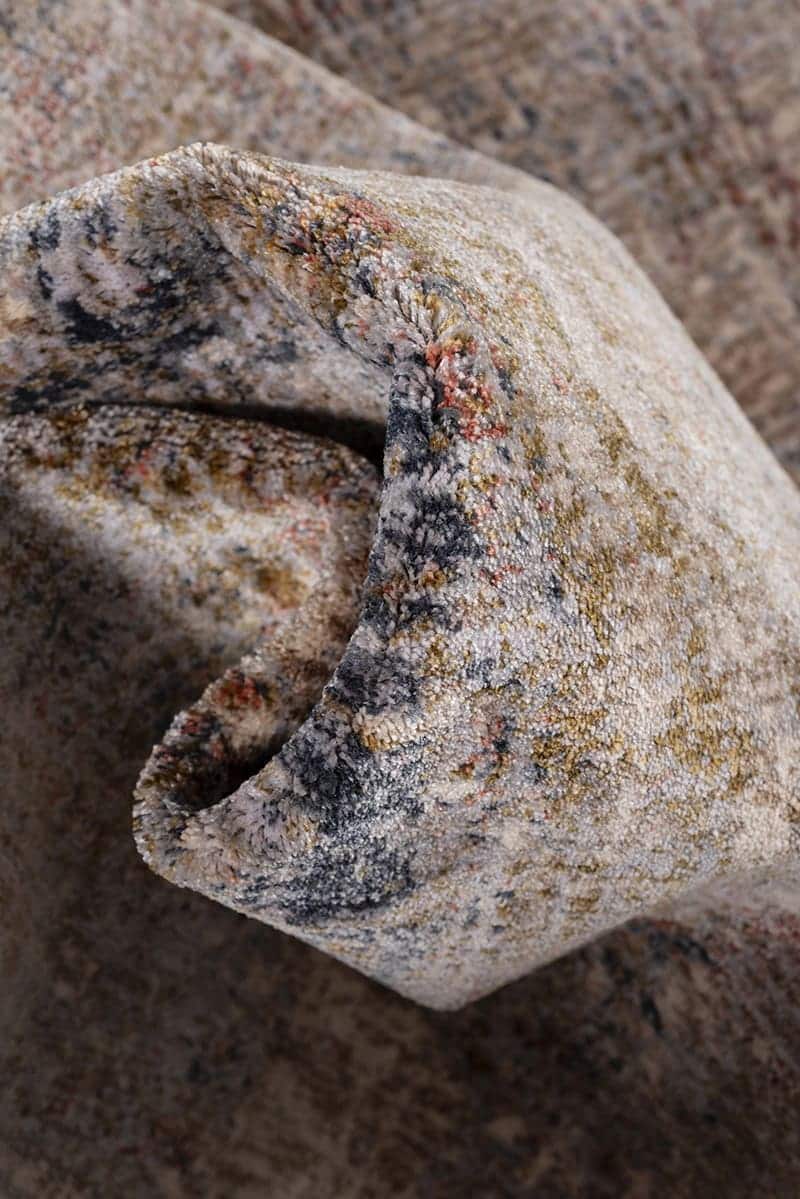 השטיח עשוי 100% סיבי פוליאסטר הנארגים במכונה בתוצרת טורקיה, במראה רב גוני ועשיר במיוחד, כאשר הוא מדמה ״אבני בזלת גולמיות״ הנוצרות ע״י הסיבים הכהים, כאשר הסיבים האדומים מציצים מבעד לצבע האפור הכהה, באריגה מושלמת וקפדנית.