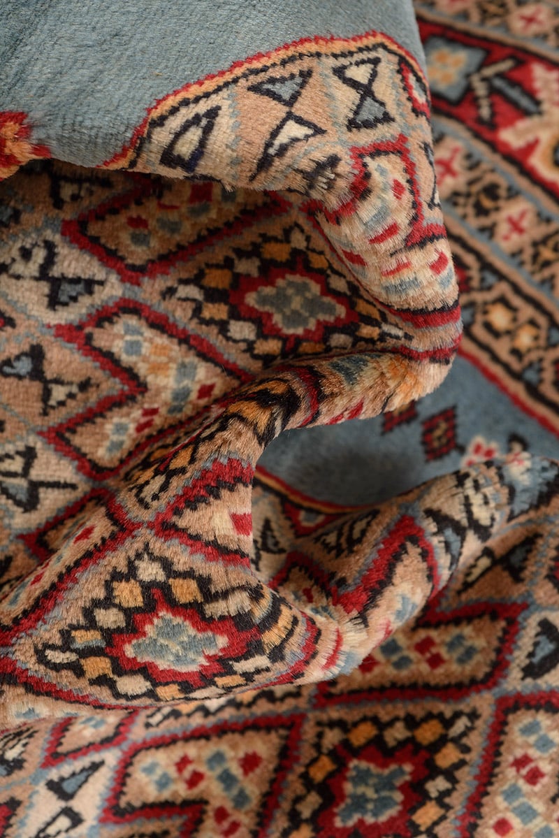 שטיח פקיסטני עשוי צמר בטקסטורה ייחודית וצבעים כפריים להוספת אופי לסלון שלכם.