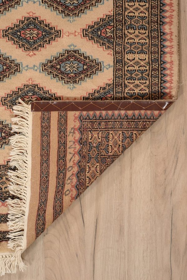 שטיח פקיסטני עשוי צמר בטקסטורה ייחודית וצבעים כפריים להוספת אופי לסלון שלכם.