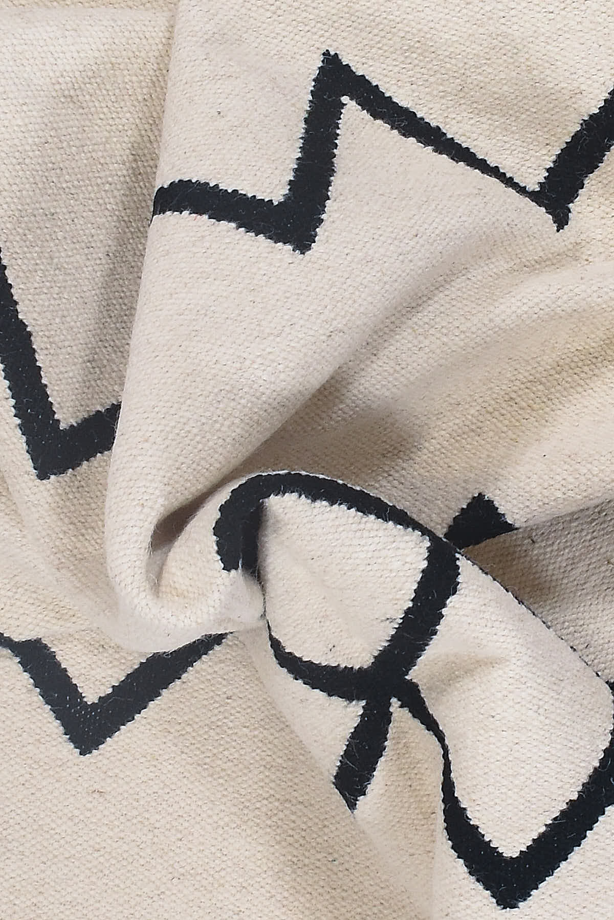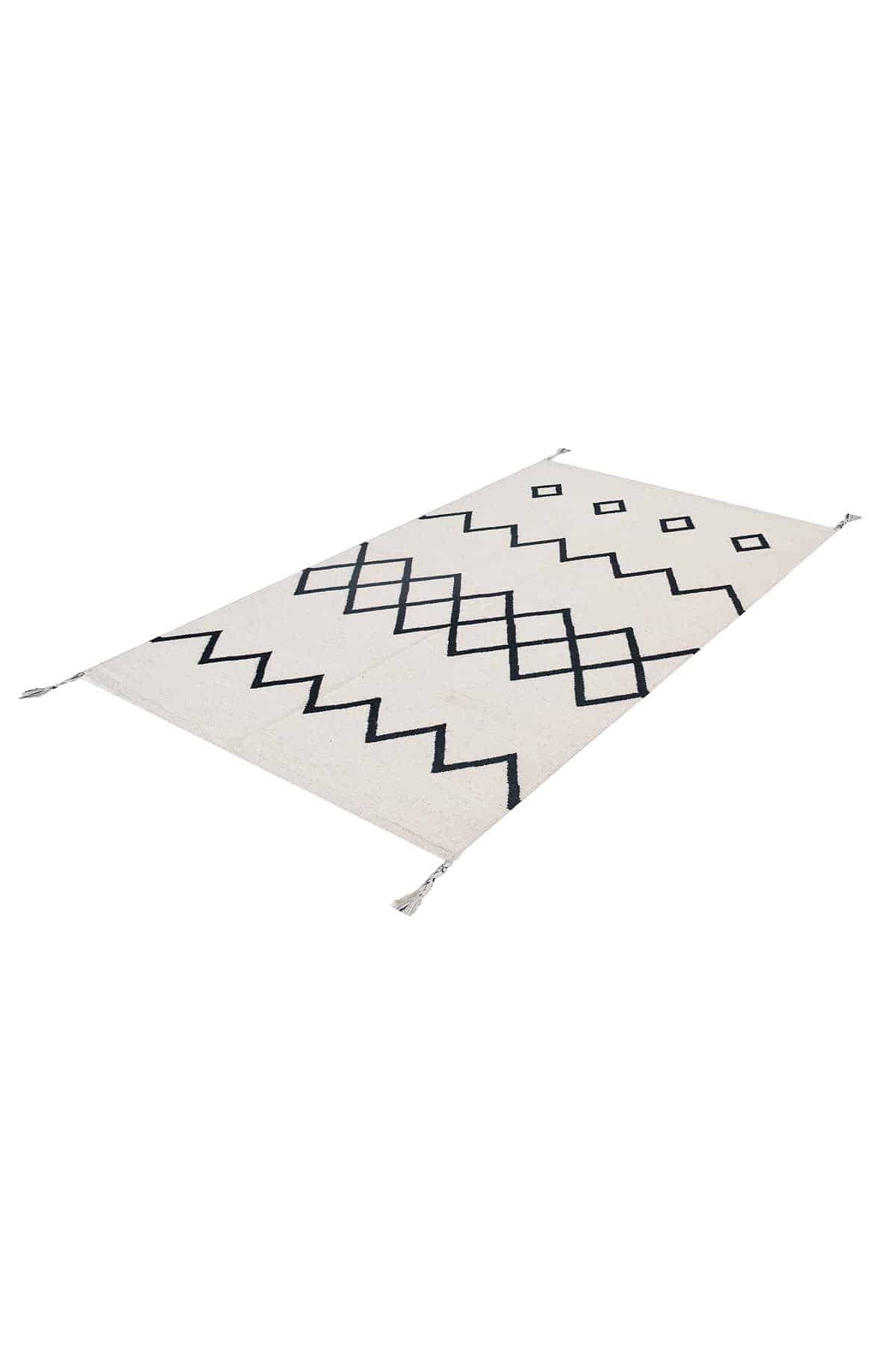 שטיח קילים ברבר לבן עם דוגמא שחורהֿ בעיצוב נורדי בדוגמת מעויינים וזיגזגים סופר טרנדיים.